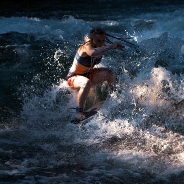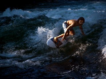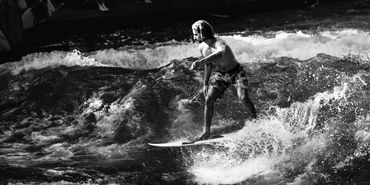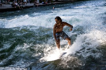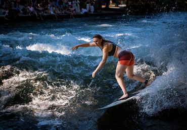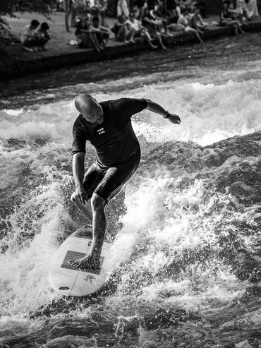 We ventured to the Eisbach in Munich, where a daily spectacle unfolds at the gateway to the Englischer Garten. Drawing surfers and spectators from across the globe, this iconic location is renowned as the premier urban river surfing destination. For four decades, enthusiasts have converged upon this site, where the man-made Eisbach emerges, just steps from the Haus der Kunst on Prinzregentenstrasse. Here, a stone step gives rise to a formidable standing wave, captivating audiences with the daring feats of surfers who navigate its crest.